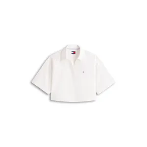 Tjw Rlx Pop Over Shi Ecru di Tommy Jeans. Camicia cropped boxy con maniche ampie e placket nascosta. Logo sul petto per un look minimale.