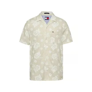 Dai un'occhiata al bar sulla spiaggia locale con questa camicia a maniche corte con stampa floreale, realizzata in cotone slub e dotata del marchio sulla tasca
