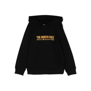 Il prodotto The North Face Kids Felpa con cappuccio con stampa logo è disponibile sullo store online RubinoKids.com. Realizzato in Cotone 100%. Il prodotto presenta un tessuto in jersey di cotone nero, logo stampato sul davanti, cappuccio ampio, maniche lunghe, tasca anteriore a marsupio, logo stampato sul retro, fodera in pile, polsini e orlo a coste.