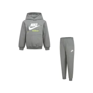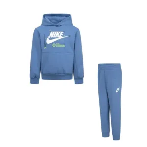Tuta con cappuccio in misto cotone felpato, composto da felpa e pantaloni.