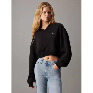 Felpa corta con scollo a V e taglio relaxed, realizzata in cotone con morbida finitura mano pesca.