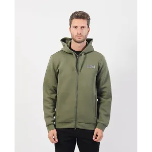 Felpa uomo EA7 modello con cappuccio e coulisse, logo sul petto, tasche laterali e chiusura fullzip. Tessuto pesante ideale per l'inverno