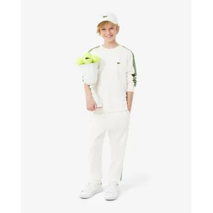 Questa felpa girocollo in cotone garzato è una brillante testimonianza della competenza sportiva di Lacoste. Un capo essenziale del guardaroba per bambini, rifinito con righe con logo su spalle e maniche e coccodrillo sul petto