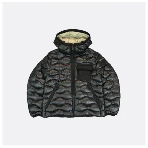 Giubbino Blauer, cappuccio con coulisse, tessuto semi lucido, tasca sul davanti con patta, patch logo sulla manica sinistra, tessuto trapuntato, chiusura con zip, tasche laterali con zip.