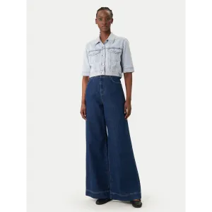GIUBBOTTO IN DENIM CROPPED CON MANICA ¾ CON TASCHE SUL PETTO