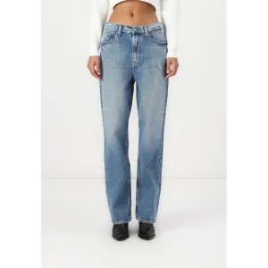 Sfoggia un autentico fascino vintage grazie ai jeans a vita alta dal design aderente in vita, contraddistinti dal taglio dritto lungo le gambe.