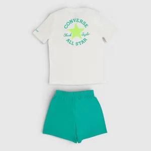 Converse T-shirt e pantaloncini per bambini. Set realizzato in maglia fine elasticizzata. Modello in tessuto arioso ad alto contenuto di cotone.
