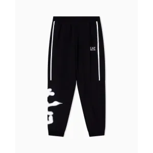 Pantaloni jogger realizzati in misto cotone, impreziosito dal logo EA7 effetto graffiti sul fondo gamba destro, dettaglio che regala grinta al capo. Il modello provvisto di pratica coulisse in vita, è personalizzato dal logo EA7 a contrasto. Il capo è parte della proposta Logo Series, dove il logo EA7 gioca un ruolo da vero protagonista della proposta, declinandosi in diverse animazioni: tono su tono, grafiche retrò e formati mini. Capi dal fit confortevole e versatile, perfetti per vestire momenti di relax e svago.