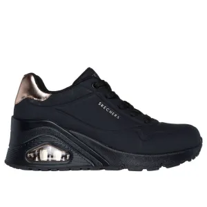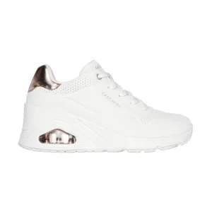Aggiorna il tuo guardaroba con un tocco di comfort indossando Skechers Street™ Uno Wedge - HI Steps. Questo stile alla moda presenta una tomaia in durabuck con finiture in durapelle metallizzata, soletta Skechers Air-Cooled Memory Foam® e una zeppa con plateau con intersuola visibile con cuscinetto d'aria Skech-Air®.