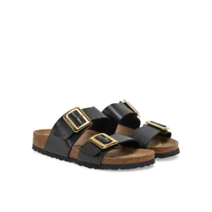 Ciabatta donna in ecoplelle lucida nera. Chiusura con fibbie. Plantare anatomico. Suola in EVA. Made in Germany. Calzata stretta.