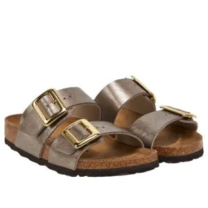 Cinturino con una doppia fibbia ad ardiglione color oro in metallo regolabile individualmente