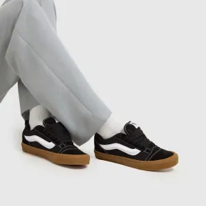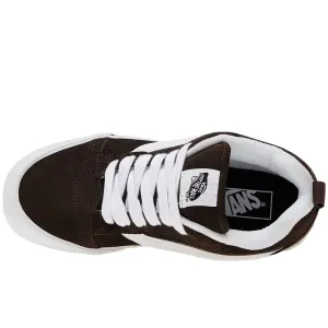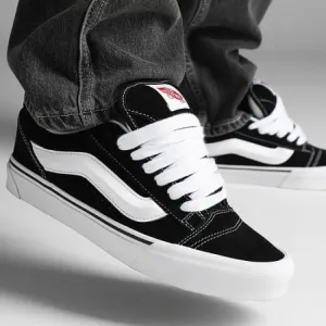 Le Vans Knu Skool  possono essere abbinate bene a molti outfit grazie alla loro combinazione di colori scuri. La tomaia interamente in suede conferisce a questa scarpa una sensazione di lusso. Lo spesso Swoosh Vans completa questo modello.