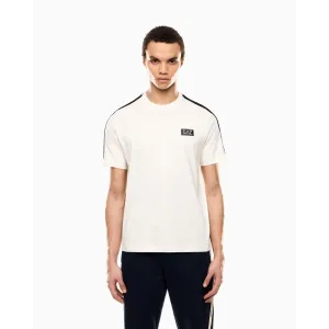 T-shirt girocollo realizzata in morbido jersey di cotone, dalla vestibilità regular. Il modello è personalizzato dal dettaglio con logo tape sulle spalle e dal logo EA7 sul petto, che riprende altri creazioni della linea Logo Series. <br>Il logo EA7 è il vero protagonista della proposta Logo Series, che in questa stagione si declina in diverse animazioni: tono su tono, grafiche retrò e formati mini. Capi dal fit confortevole e versatile, perfetti per vestire momenti di relax e svago.