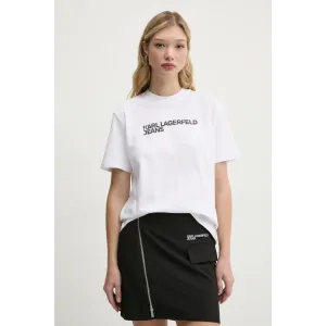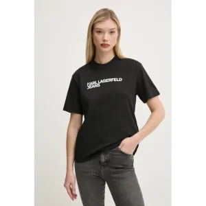 Karl Lagerfeld Jeans T-shirt realizzata in maglia fine elasticizzata. Il modello realizzato in materiale di cotone traspirante.