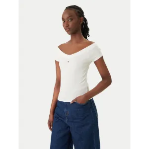 La t-shirt da donna Tommy Hilfiger Jeans DW0DW22265 offre un design elegante e contemporaneo, perfetto per la stagione estiva e le occasioni casual-chic. La maglia a maniche corte presenta una scollatura a V ampia che valorizza le spalle, donando un tocco femminile e sofisticato. Realizzata con il 94% di cotone rigenerato e il 6% di elastam/lycra, assicura una vestibilità confortevole e una piacevole elasticità che segue le linee del corpo. Il logo Tommy Hilfiger, discreto e raffinato, è applicato sul davanti, a testimonianza dello stile iconico del brand. Ideale da abbinare a jeans o gonne per un look fresco e di tendenza.
