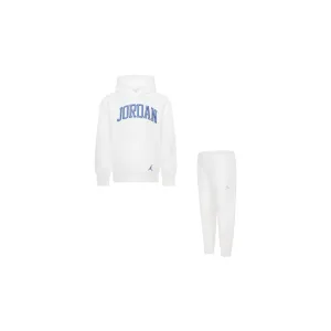 Il maglione con cappuccio, realizzato in tessuto morbido e traspirante, assicura un calore ottimale consentendo libertà di movimento per i giochi e le attività quotidiane. Il suo design bianco, arricchito dall'iconico logo Jordan, apporta un tocco fresco ed elegante, perfetto per le gite e per rilassarsi a casa.