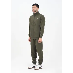 PUMA Tuta Essentials verde da uomo. Mostra il tuo stile con l'ultima tuta di PUMA. La giacca presenta un collo alto e polsini a coste, mentre i pantaloni offrono una fascia elasticizzata in vita con coulisse interna. Entrambi i pezzi sfoggiano la stampa gommata del logo Puma.